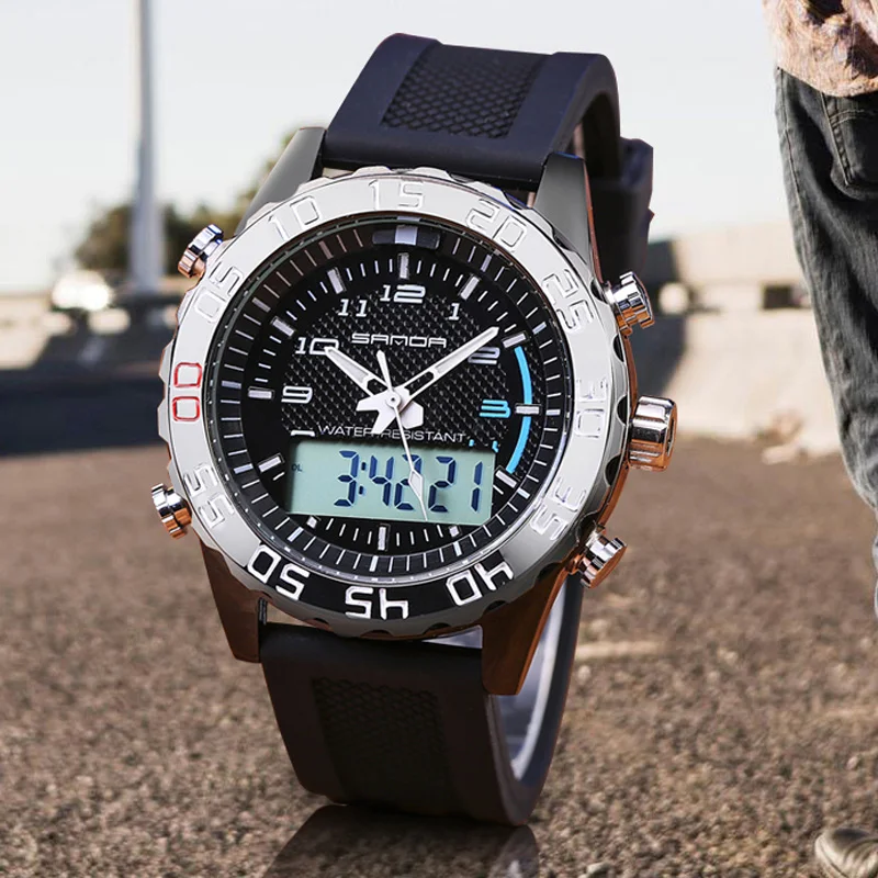 شراءمعلومات اضافية ساندا العلامة التجارية كرونوغراف العسكرية ساعة كوارتز الرجال للماء الرياضة ووتش للرجال الساعات الرقمية العلامة التجارية الفاخرة ساعة الغو...
