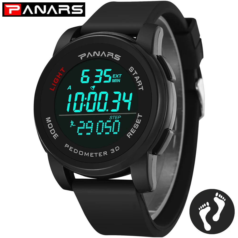 معرض من Panars LED ساعة رقمية الرجال الرياضة ساعة عداد خطى للماء 50 M الأزياء كرونوس العد التنازلي العسكرية ساعة Relogio الرقمية جديد